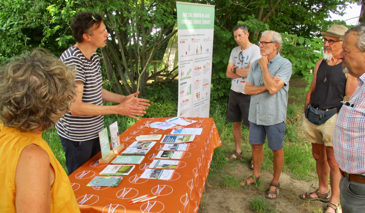 Wie gaat er binnen 20 jaar voor ons eten zorgen? Elke week stoppen 25 landbouwbedrijven in Vlaanderen. Voor vele boeren is landbouwgrond onbetaalbaar. Daarom kopen we samen grond en geven we kansen aan boeren om een duurzaam landbouwbedrijf op te starten, uit te bouwen en door te geven aan de volgende generatie.